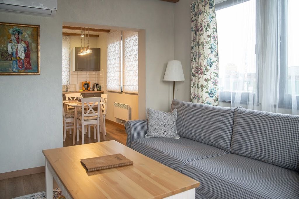 С/у, душ, мини-кухня, Х, ТВ, электрочайник, кондиционер, посудомоечная машина, сейф, гладильная доска, утюг, Wi-Fi, набор посуды