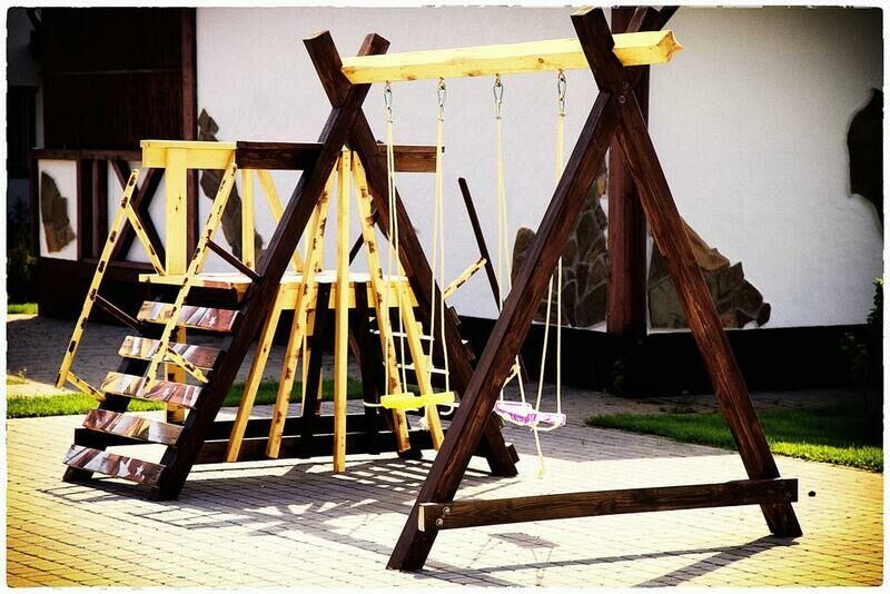 Детская площадка с качелями.