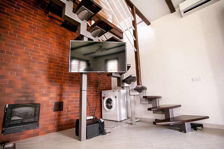 В гостиной установлен телевизор с плоским экраном и кондиционер. Гостям предоставляется чайник.