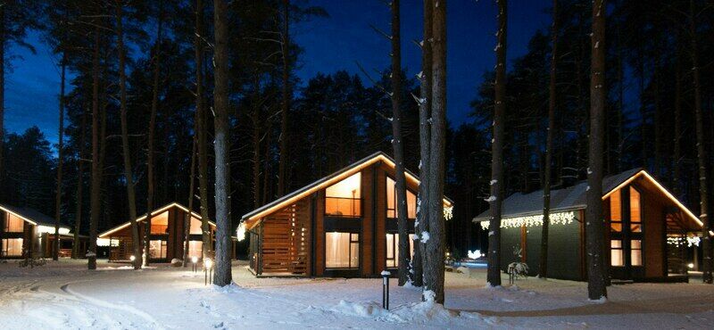 Для строительства жилого комплекса «Шишки» использованы только натуральные природные материалы. Все домики возведены из бруса сосны, ее аромат ощущается в каждом номере и создает особенную ауру.