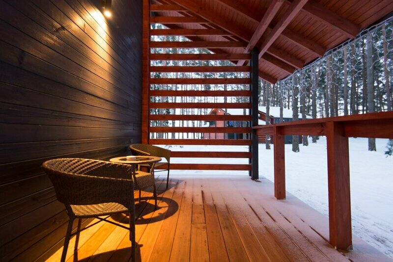 В домике есть персональная терраса с выходом к воде и индивидуальный пирс. Сам дом расположен уединенно, поэтому никто не сможет потревожить ваш отдых.