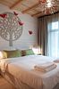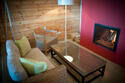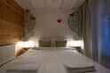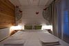 В номере 4 зоны: прихожая с вешалкой и полками для вещей, санузел с душем, комната для отдыха со всем необходимым и просторный балкон с эко-мебелью (небольшая софа, столик и два кресла). В комнате есть двуспальная кровать, а так же место, чтобы в случае необходимости разместить дополнительную взрослую либо детскую кроватку. В комнате так же имеется небольшой холодильник для хранения вина и напитков, телевизор на стене с большим количеством каналов, уютное освещение, плотные шторы, способствующие крепкому сну, системы хранения вещей под кроватью, фен.