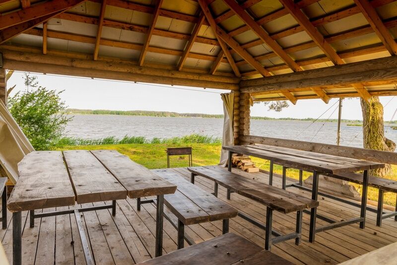 Специально для любителей комфортного время препровождения мы сделали красивое место в нашем комплексе на берегу озера. Уютный крытый гриль-домик с большим столом позволит собрать всех самых близких друзей и замечательно провести время!