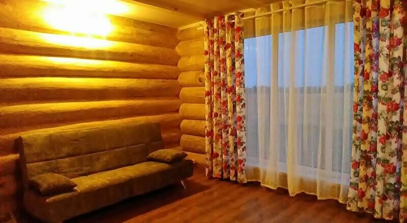 Семейный номер с диваном, обеденной зоной и кухонными принадлежностями. Размер номера 25 м².