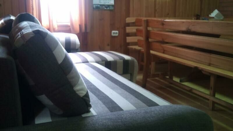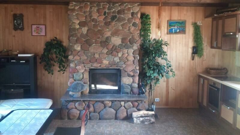 Дом с гостиной зоной, камином, DVD-плеером и телевизором с плоским экраном и спутниковыми каналами. Площадь дома - 86 м².