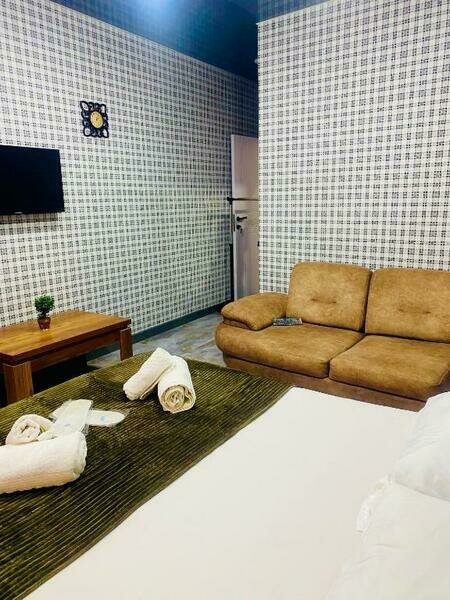 Путешествие с семьейРекомендую.Очень уютный отель, жили на третьем этаже, полотенца меняли по просьбе, без проблем, предлагали,убрать в номере. Расположение, очень удобное, до моря 10 минут. Но,один минус, это кровать, пока уляжешься, скрип слышит,всё Батуми 😀,утром болели все рёбра,очень жёсткая....Завтраки, шикарные.