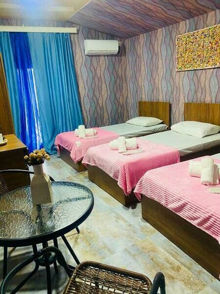 Короткий отпуск с друзьямиОтличное местоПриехали в Грузию на 10 дней, выбор остановился на этом отеле. И ни на секунду не пожалели! Максимально вежливый и приятный персонал, сытные завтраки и отличное расположение, пляж буквально в 10 минутах ходьбы! По номеру особых нареканий нет: есть кондиционер, небольшой холодильник, балкончик, где можно провести дождливый вечер за бокалом грузинского вина! Единственное, что вероятно может смутить некоторых - уборка номера. Она проводится примерно раз в три дня, и нужно самостоятельно попросить, чтобы в вашем номере сделали уборку.