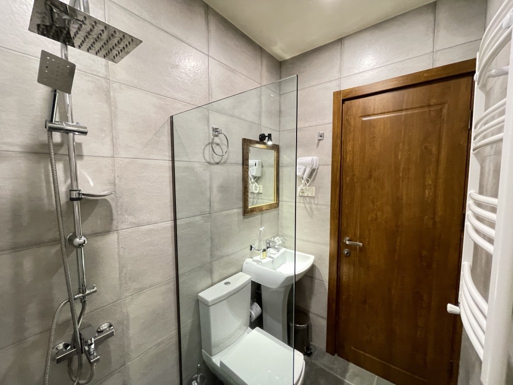 Номер уютно обставлен и оснащён необходимым, чтобы отдохнуть после долгого и насыщенного дня. Имеются халат. Оснащение зависит от выбранной категории номера.