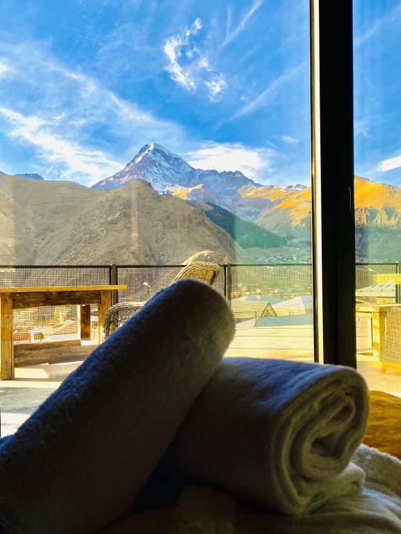 Подходящий вариант для бюджетного отдыха — отель Misty Mountain располагается в Степанцминде. Этот отель находится в центре города. Перед сном есть возможность прогуляться вдоль главных достопримечательностей. Рядом с отелем — горнолыжный курорт Гудаури и горный курорт Цей.