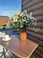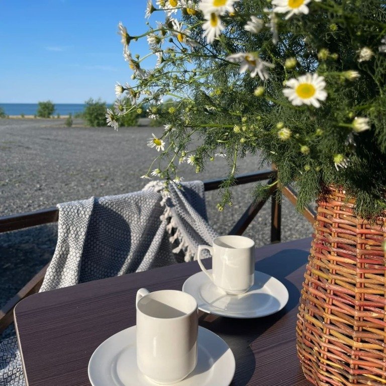 На территории базы отдыха есть кафе с летней террасой, откуда открывается вид на озеро.