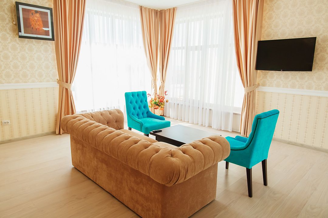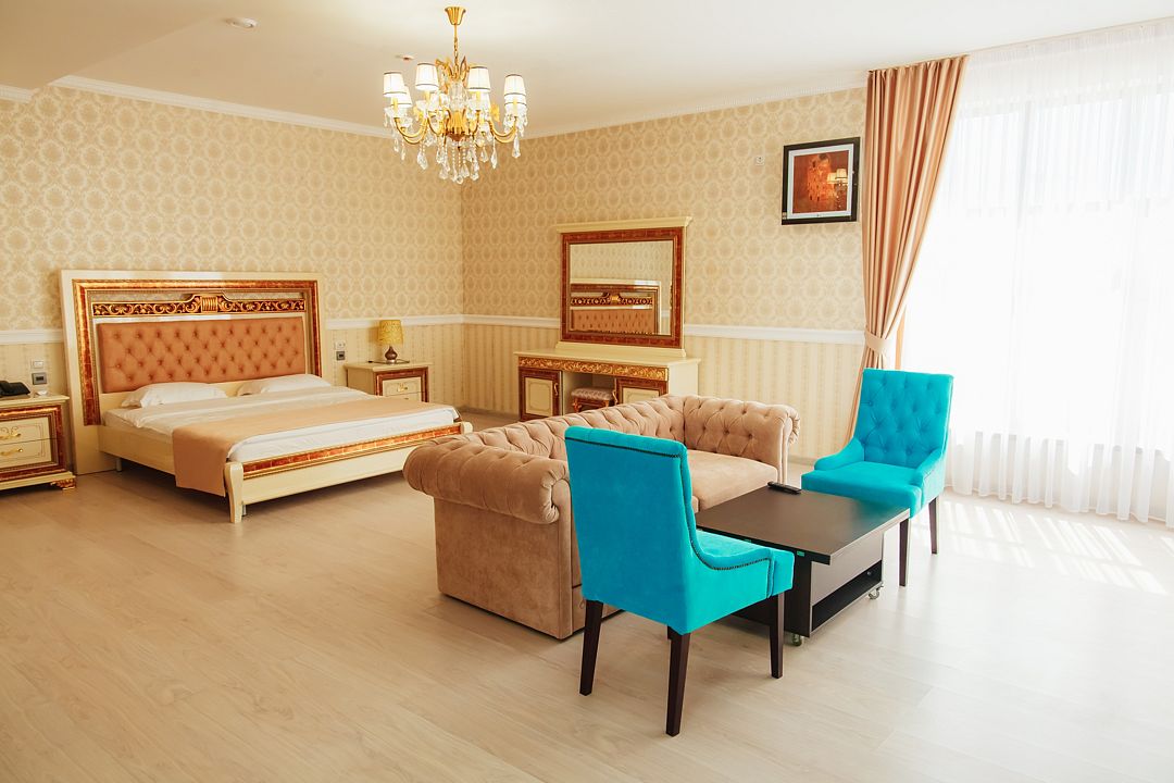 - Для вашего комфортного проживания номер оборудован кондиционером, телефоном, спутниковым телевидением, сейфом, раскладной софой.