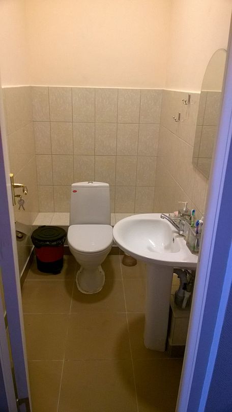 - На этаже имеются 2 душевые кабинки и 2 санузла с унитазом и раковиной. Горячая и холодная вода.