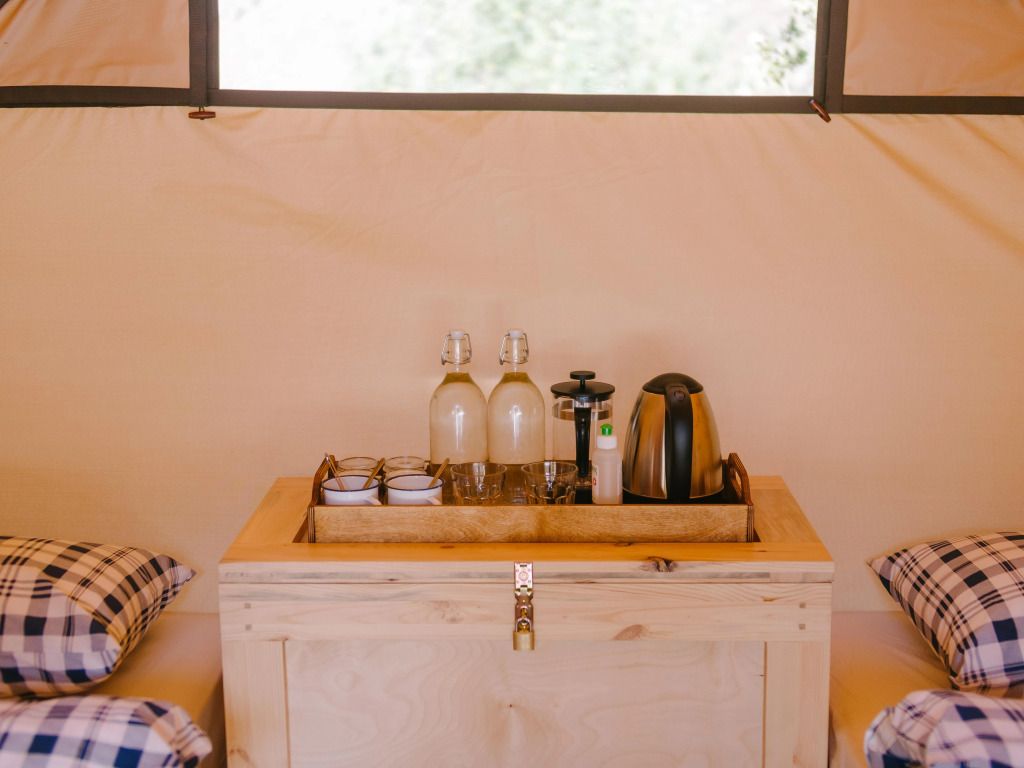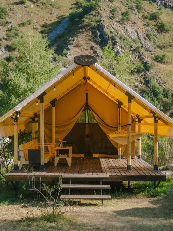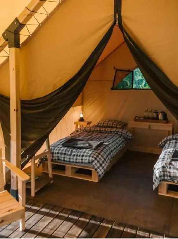 Сафари-тент с удобствами для комфортного проживания.