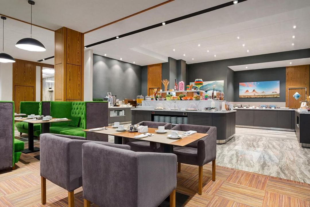 Путешествие по работеWyndham Garden Astana - высокий уровень.Отличный отель недалеко от аэропорта, напротив расположена самая большая мечеть Центральной Азии. В пяти минутах ходьбы находится ТРЦ МЕGA Silk Way. Вежливый и внимательный персонал во всех сферах обслуживания. Уютные номера со всем необходимым инвентарем, бесперебойная работа интернета и завтрак на любой вкус оставляют хорошее впечатление об отеле в целом.