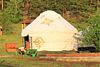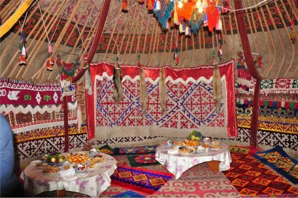 - Национальная казахская юрта – аутентичная юрта, на деревянном помосте.