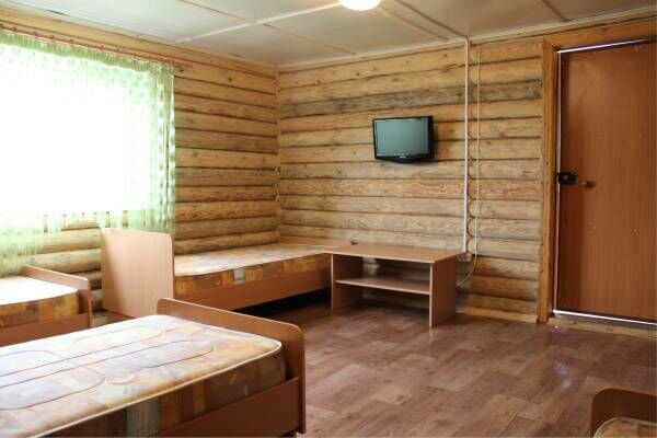 - Одноэтажный деревянный сруб, 3-х комнатный, на 8-10 человек. Бронирование доступно минимум для 6 человек.