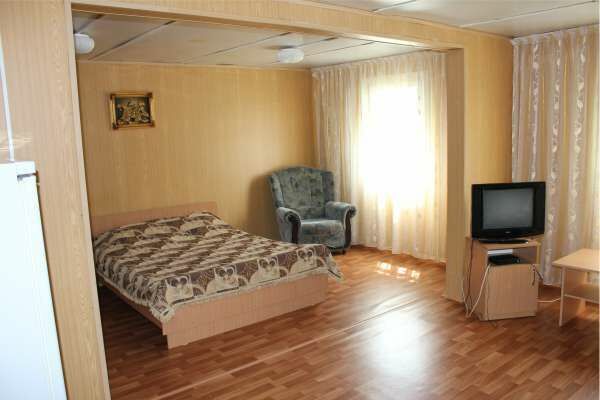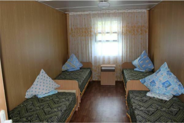 - В номерах имеются: шкаф, стол и стулья, холодильник, постельное белье.