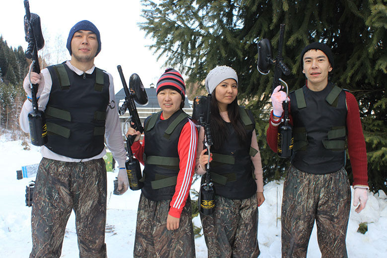 - камуфляжный костюм,маска,защитный жилет,перчатки,инструктор,судьи +400 шаров время 4 часа.