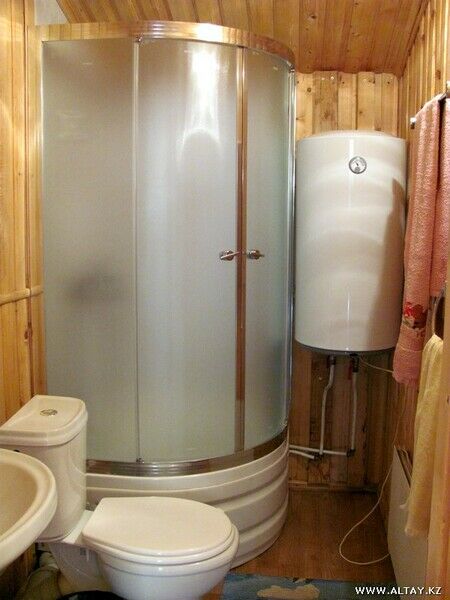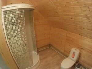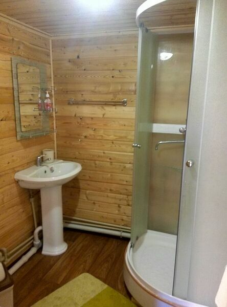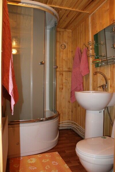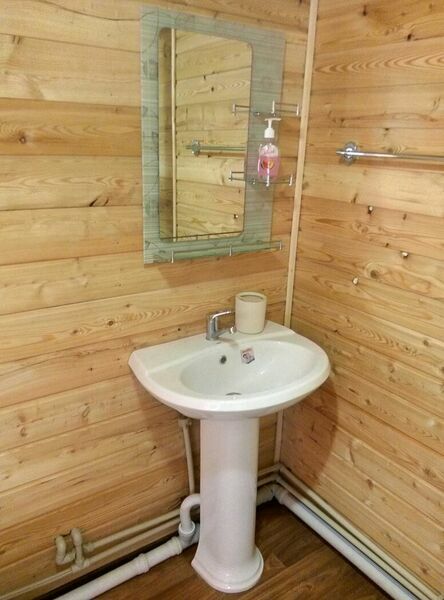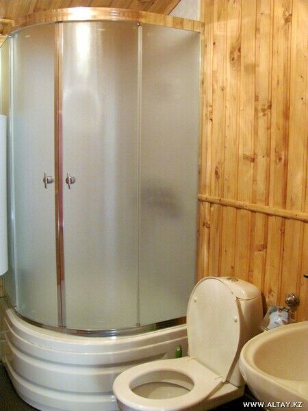 - В номерах расположена ванная комната с душевой кабиной, раковиной и санузлом.