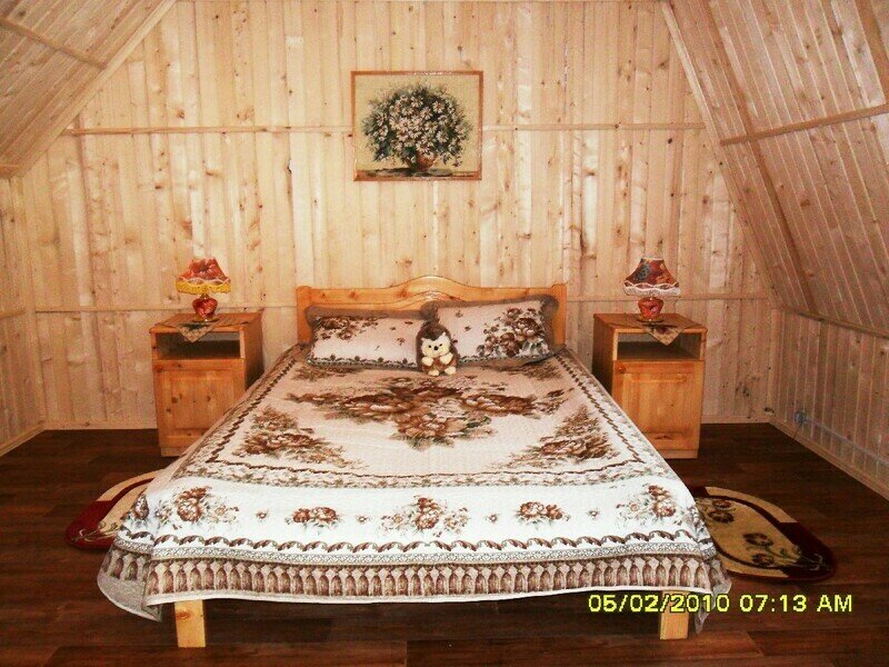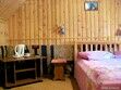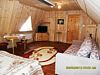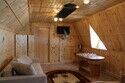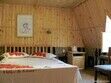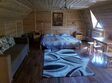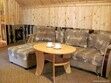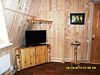 - В спальной-гостиной расположена 2-х спальная кровать, раскладывающийся диван, шкаф, тумбочки, телевизор со спутниковыми каналами, столовая зона: стол, стулья, посуда, чайник.