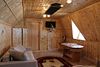 - Войдя в номер, Вы оказываетесь в прихожей, из которой можно попасть во все остальные комнаты: спальню-гостиную, спальную комнату, комнату с санузлом и душем, а также кладовую для хранения вещей и снаряжения.