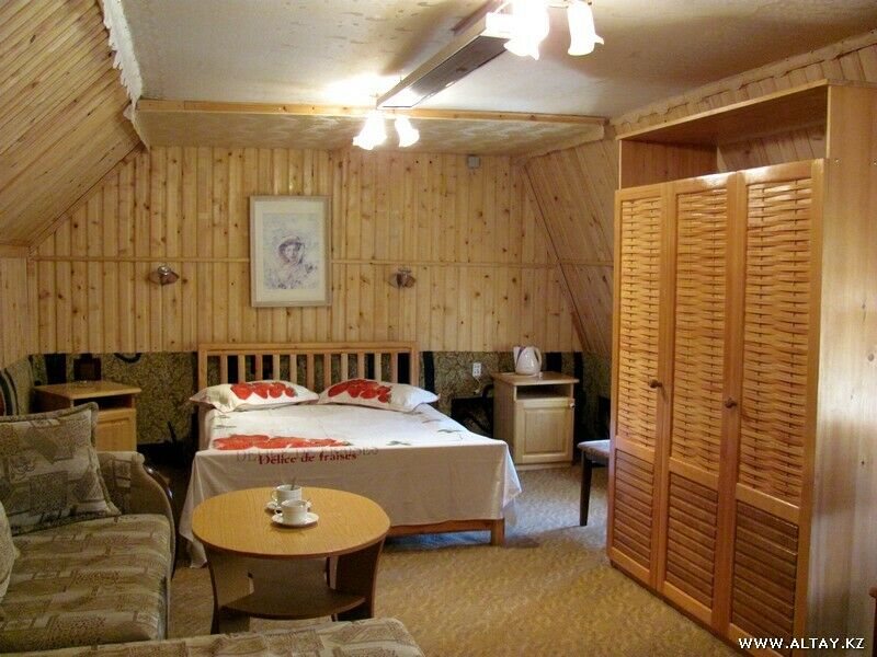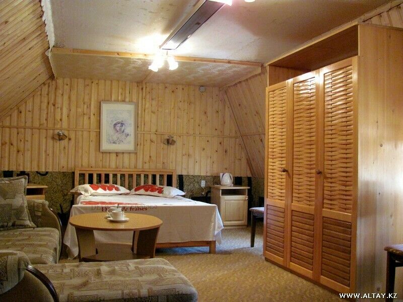 Номер выполнен в приятной «деревянной» вариации: обстановка ненавязчивая, уютная, функциональная, без излишеств. Отдых в таком номере станет приятным дополнением ко всем позитивным впечатлениям, полученным в горнолыжном комплексе «Алтайские Альпы»!
