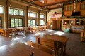 - Вместимость кафе 120 мест. Альпийское кафе делиться на основной зал и уютные кабинки — «березовую рощу», расположенные на первом этаже и малый зал на втором этаже.