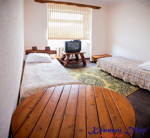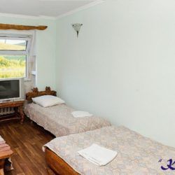 Две односпальные кровати из массива натурального дерева, санузел в номере (холодная и горячая вода), телевизор