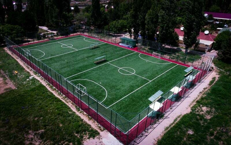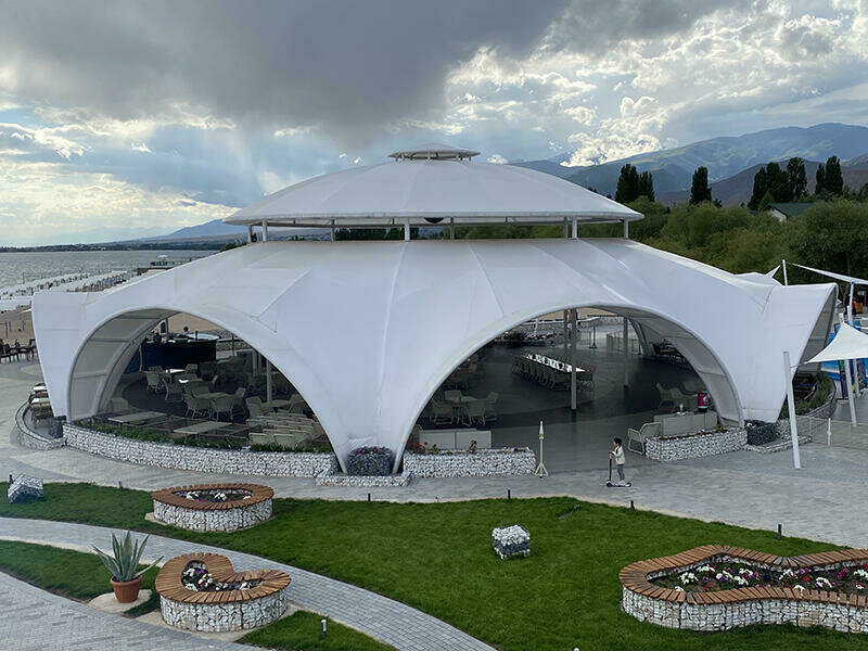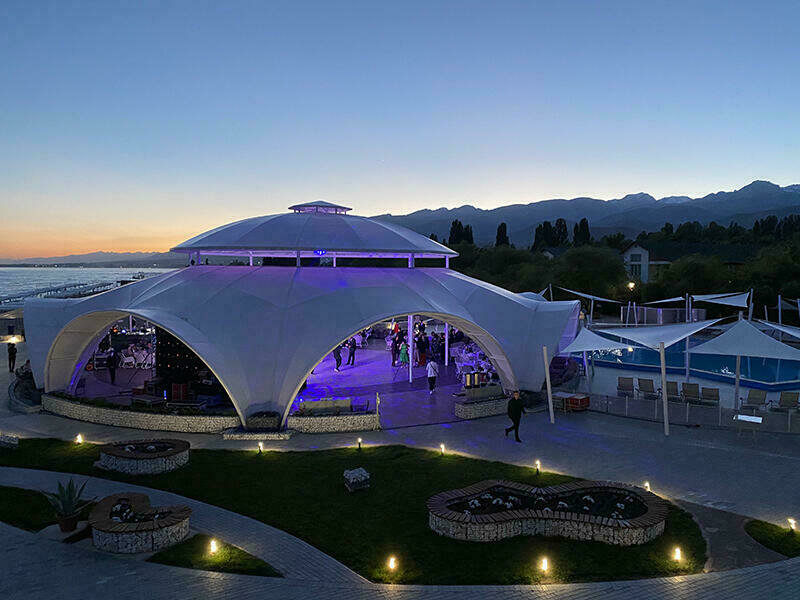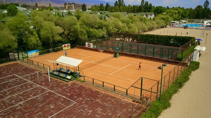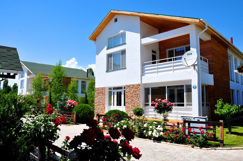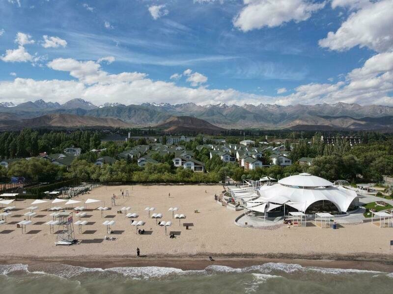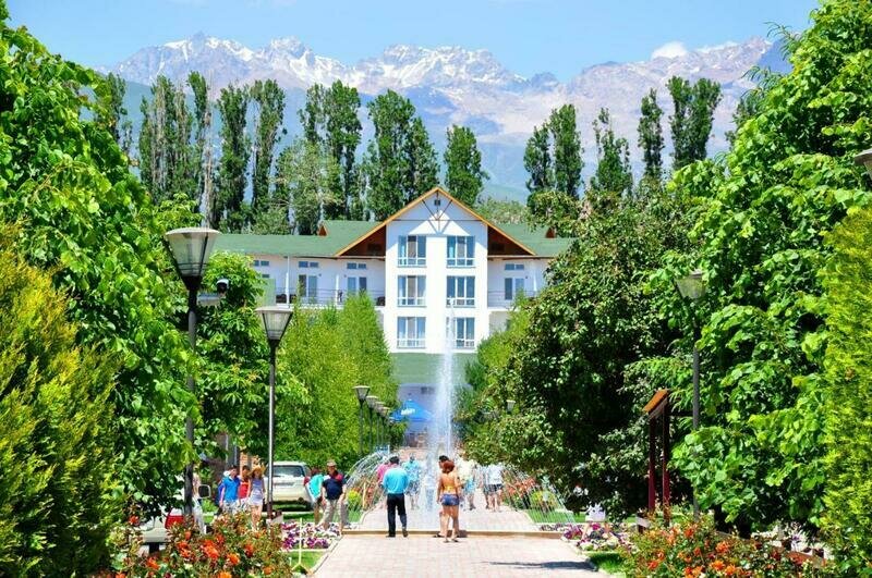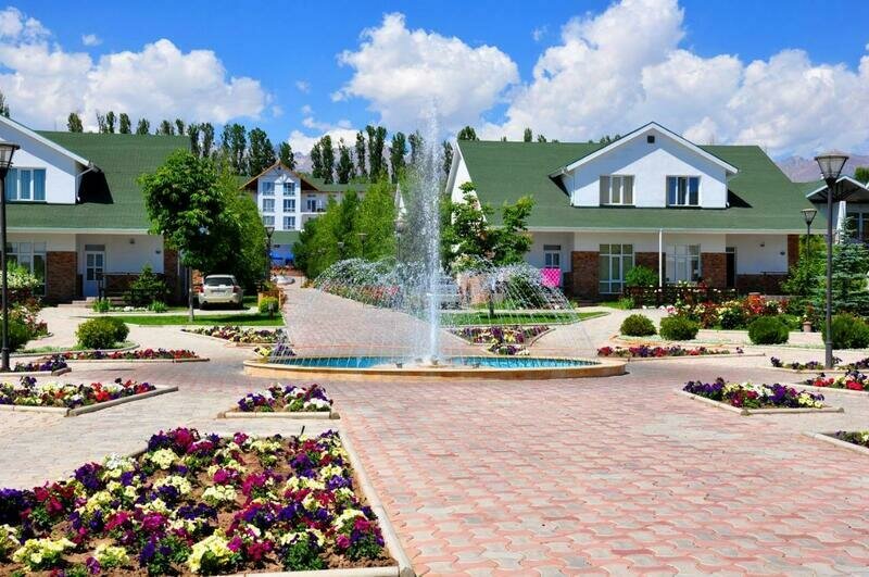 Этот курортный отель расположен в селе Бактуу-Долоноту, на северном берегу озера Иссык-Куль.