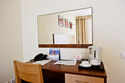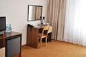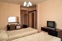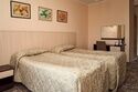 18 кв.м, две кровати (сдвигаются), прикроватные тумбочки, шкаф-купе, стол ,стул, мини-бар, сейф, ТВ, телефон, интернет, фен, эл.чайник, с/у, душ.кабина