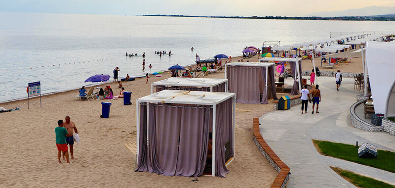 Инфраструктура: лежаки, зонтики, шезлонгиПесчаный пляж