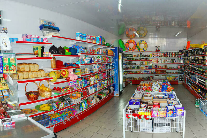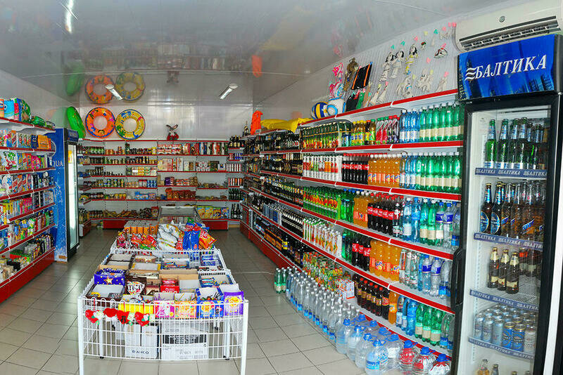 На территории Курортного отеля «Каприз» работают продовольственный магазин и магазин спортивных товаров.