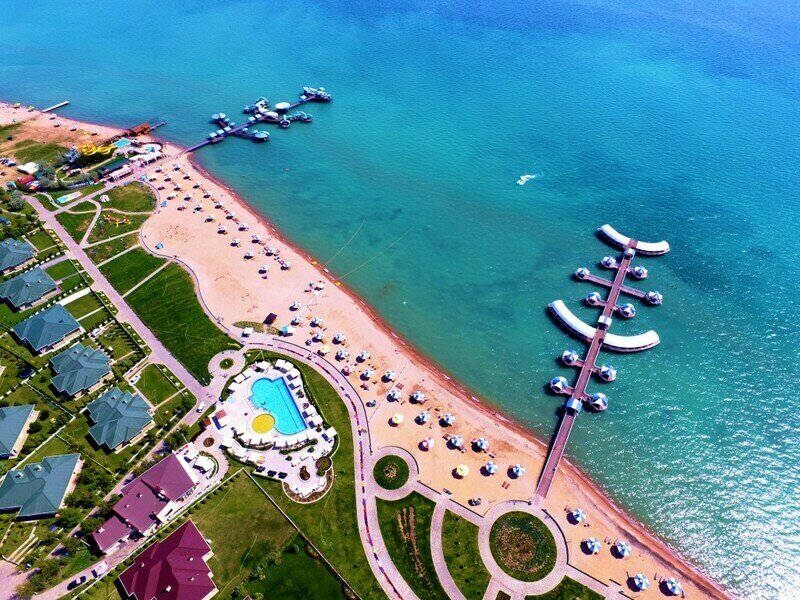 Самолетом до аэропорта г. Иссык-Куль, далее на личном транспорте или такси.