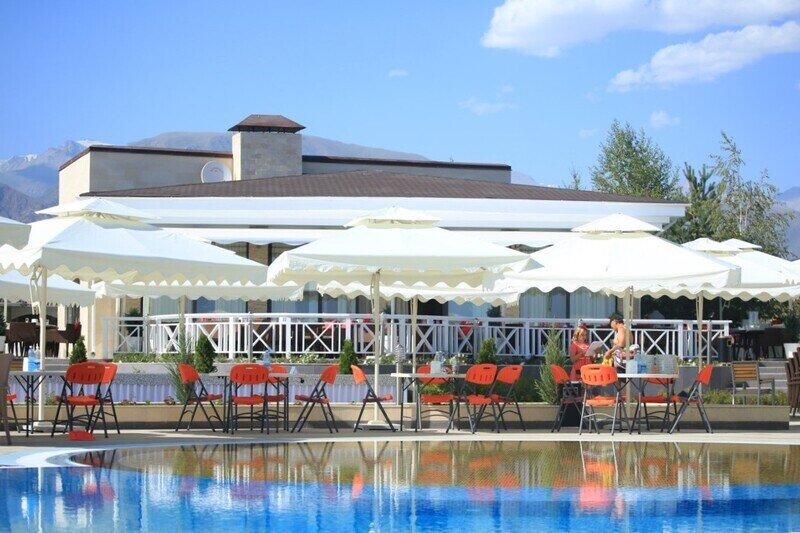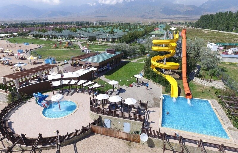 Поездом до ж/д вокзала г. Балыкчи, далее на маршрутке №501 до остановки «Чон-Сары-Ой», далее пройти 2,7 км до отеля.