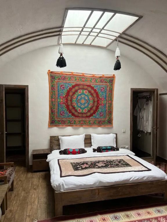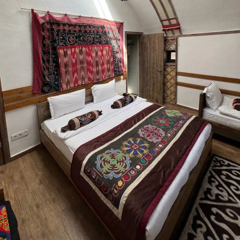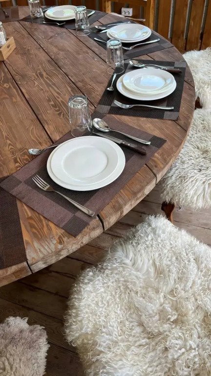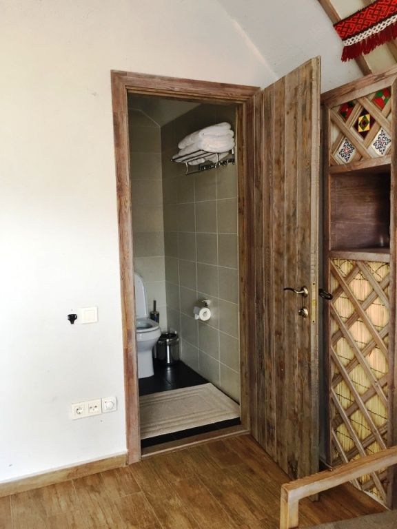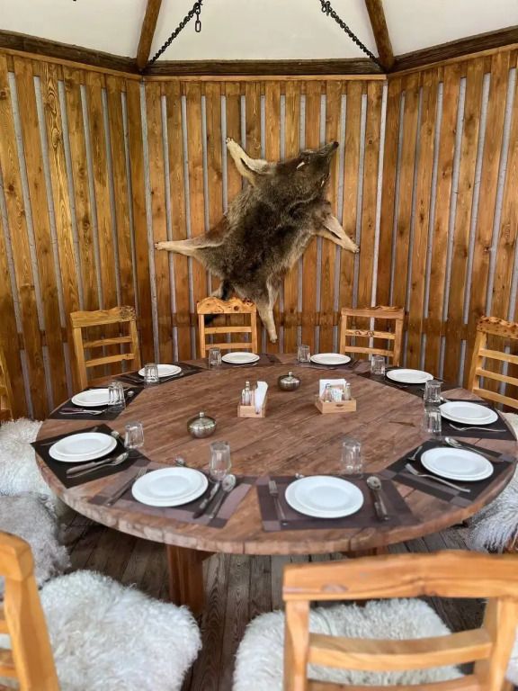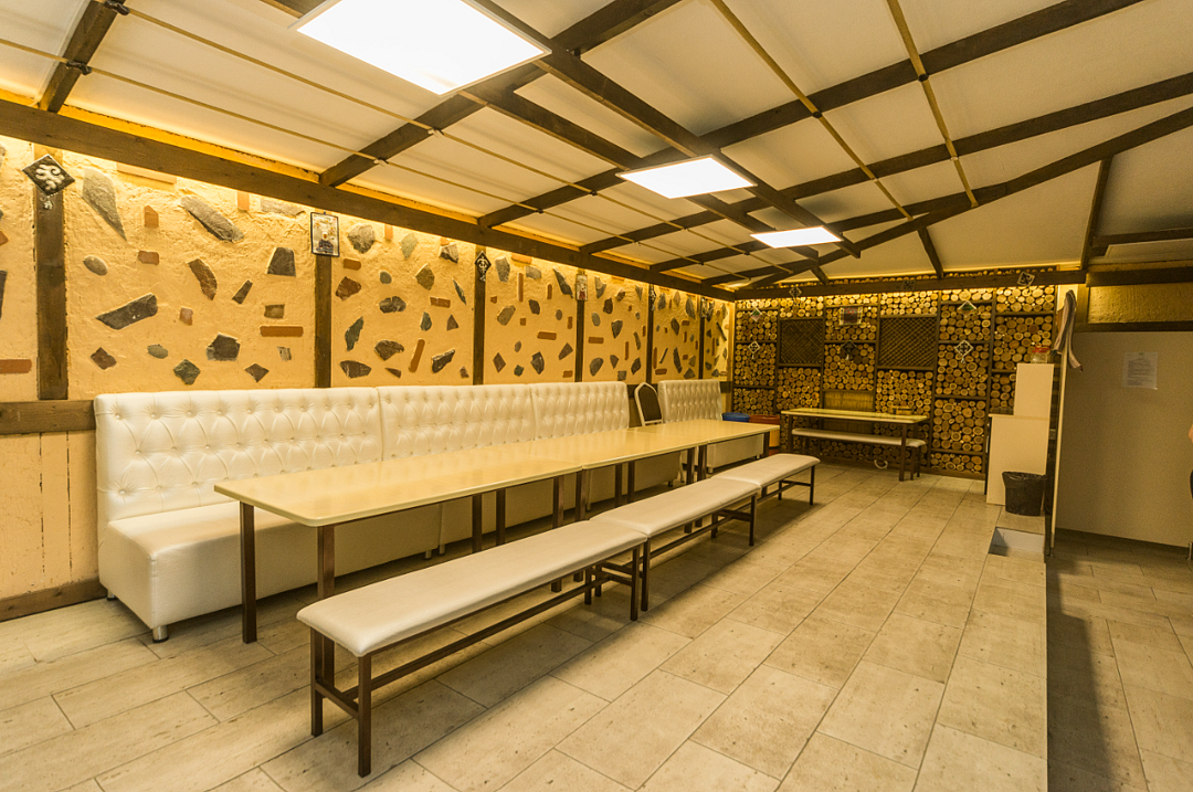 - этно домик с очагом внутри с выходом в банно-оздоровительный комплекс — идеально подходит для компаний друзей или родственников до 8 человек, где можно отдохнуть, а также насладиться самыми вкусными блюдами национальной кухни;