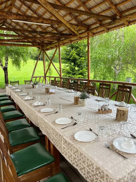 Время вспомнить о хлебе насущном! Для гостей работает ресторан. На территории отеля предоставляется доступ в интернет. К услугам гостей открытый бассейн. Также для гостей в отеле: баня, караоке, площадка для барбекю, экскурсионное бюро.