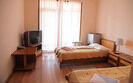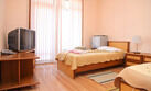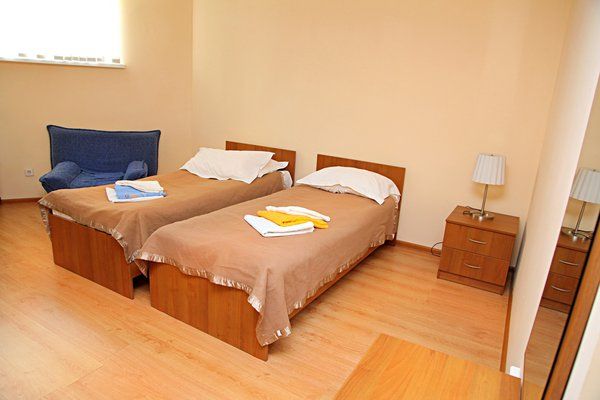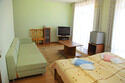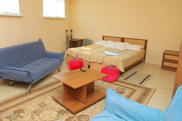 Путешествие с семьейОтличное место для семейного отдыхаВыбирали место отдыха довольно тщательно, так как ехали вместе с 5-летней дочкой и не хотели "сюрпризов" типа столовской еды, которую есть невозможно и номеров с мебелью, которая помнит еще времена СССР. И не пожалели, а наоборот, остались довольны на все 100%. Мы бронировали двухместный номер в цокольном этаже с дополнительным размещением для ребенка (ребенку предоставили полноценную кровать). В номере чисто, уютно - есть все необходимое (телевизор, маленький холодильник, необходимый набор посуды для двух человек, чайник), в ванной комнате - фен (правда, я всегда беру свой, не надеясь на гостиничный). Постельное белье белоснежное, на каждого отдыхающего выдают по 3 полотенца (лицевое, банное и пляжное), горничные меняют их, как и постельное белье при каждой уборке. Кстати, уборку здесь делают по требованию - просто отдаешь ключи на ресепшн, и пока ты на пляже или в городе в твоем номере сделают уборку.