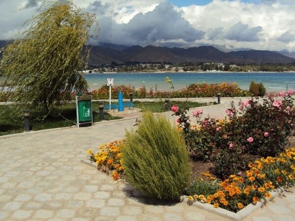 Поездом до ж/д вокзала г. Балыкчи, далее на автобусе №401 до остановки «Автовокзал Чолпон-Ата», далее пройти 2,02 км до пансионата.