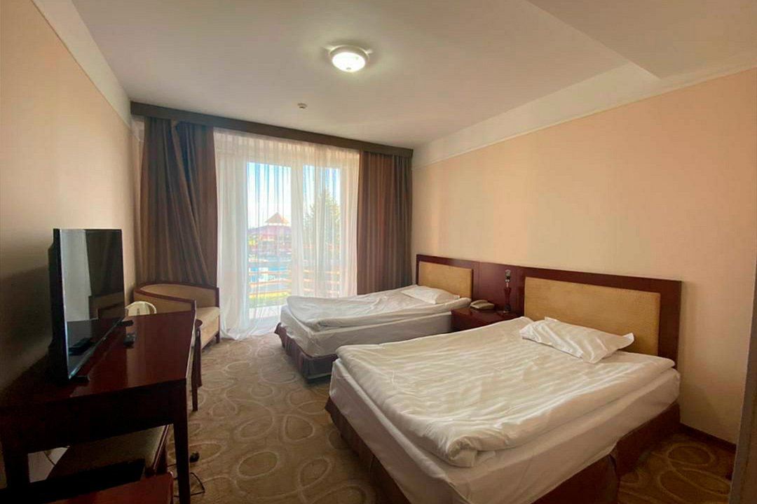 На территории центра работает ресторан, к услугам отдыхающих – открытый бассейн с зоной отдыха, тренажерный зал и спа-центр с джакузи, сауной, массажным кабинетом, бассейном. Гостям предлагаются оздоровительные программы, сеансы массажи и грязелечения. Для любителей спорта организованы спортивные площадки, футбольное поле, теннисный корт. Желающие смогут арендовать самокаты и велосипеды для прогулок по окрестностям. Юные гости весело проведут время на игровой площадке с качелями и горками.