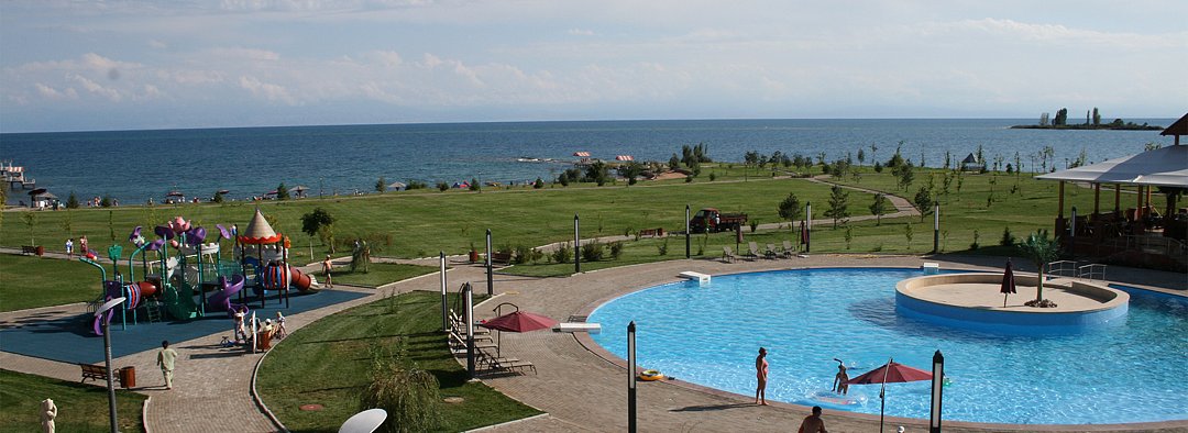 Самолетом до аэропорта «Иссык-Куль» (с. Тамчи), далее на такси.