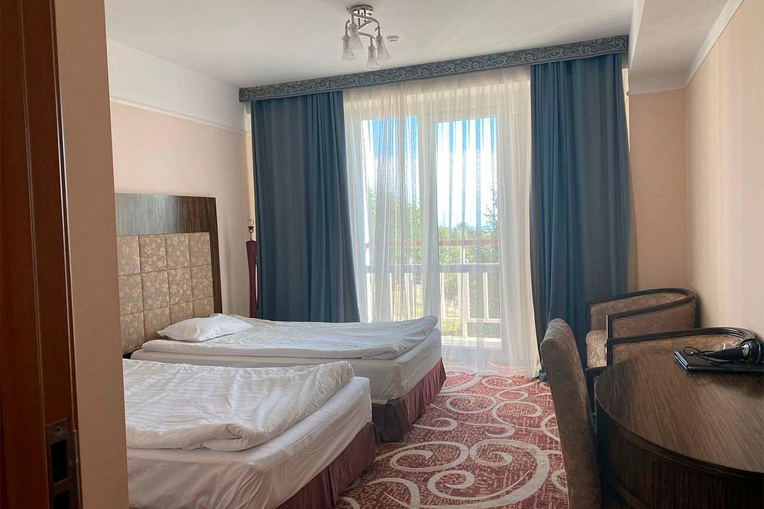 Комплекс занимает благоустроенную территорию с парковой зоной на первой береговой линии. В современных гостевых корпусах однокомнатные и двухкомнатные номера разных категорий комфорта, в том числе и VIP-апартаменты. Везде предусмотрен персональный санузел с душем, есть кондиционер, телевизор, сеть wi-fi.