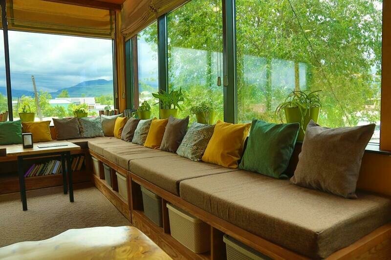 Очень здорово, что руководство отеля зарезервировало место отдыха на втором этаже, украшением которого являются мягкие диваны с подушками и панорамные окна. Именно там мы собрались, чтобы обсудить план следующего дня.