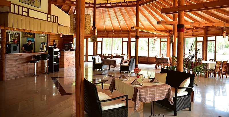 Национальная кыргызская кухня: бешпармак, куурдак, гульчатай, кыргызские деликатессы, национальные напитки. Находится с восточной стороны пляжа.