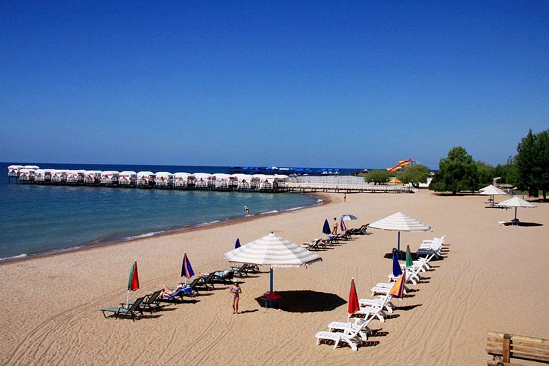 Читать полностьюИмеется огороженная зона для детей, а также шезлонги для отдыха, бар. Детям разрешается купаться только под присмотром взрослых.