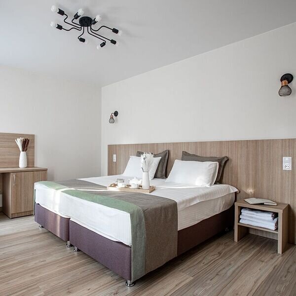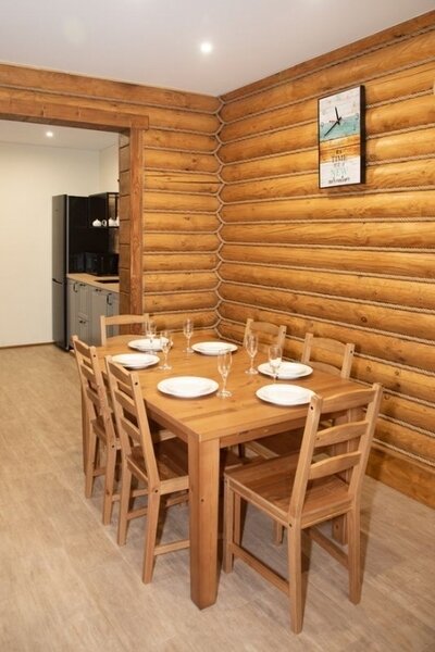 Уютный одноэтажный дом-дуплекс, площадью 160 м кВ, с тремя спальнями с туалетными комнатами, большой гостиной с дровяным камином, мягкой зоной и большим TV и полностью оборудованной кухней. В доме имеется большая теплая терраса. Такой коттедж рассчитан на 6 основных мест, с возможностью 2-х дополнительных. Поскольку эта категория домов является дуплекс, то есть это два коттеджа, объединенные одной крышей и общей боковой стеной, поэтому в некоторых из них есть возможность объединить оба дома в одно пространство.