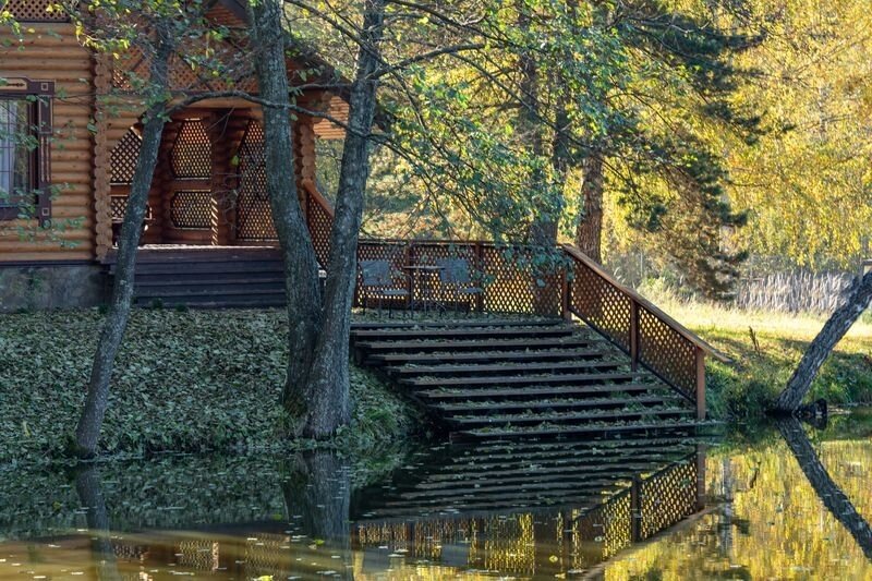 Настоящий классический сруб в стиле русской усадьбы площадью 300 кВ.м, расположен в уединенном, живописном месте комплекса «Лесные пруды, на самом берегу водоема, в тени вековых лип с выходом на гладь воды и панорамными видами.
