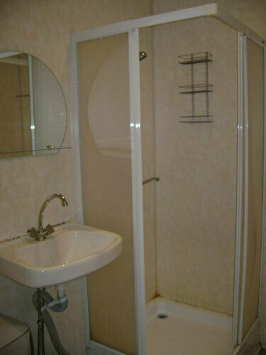 Трёхместный номер с полуторными кроватями, санузлом с душем, телевизором и холодильником.