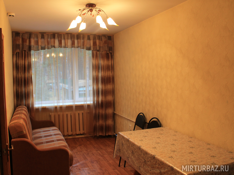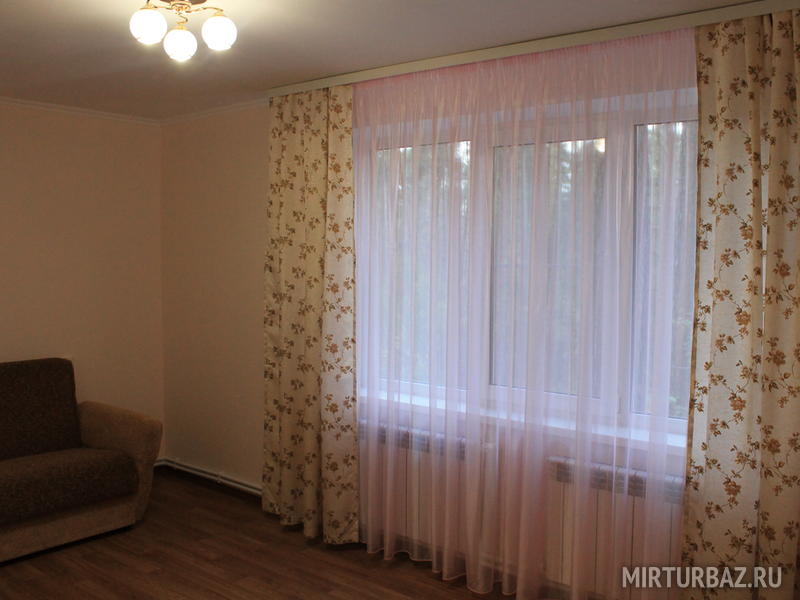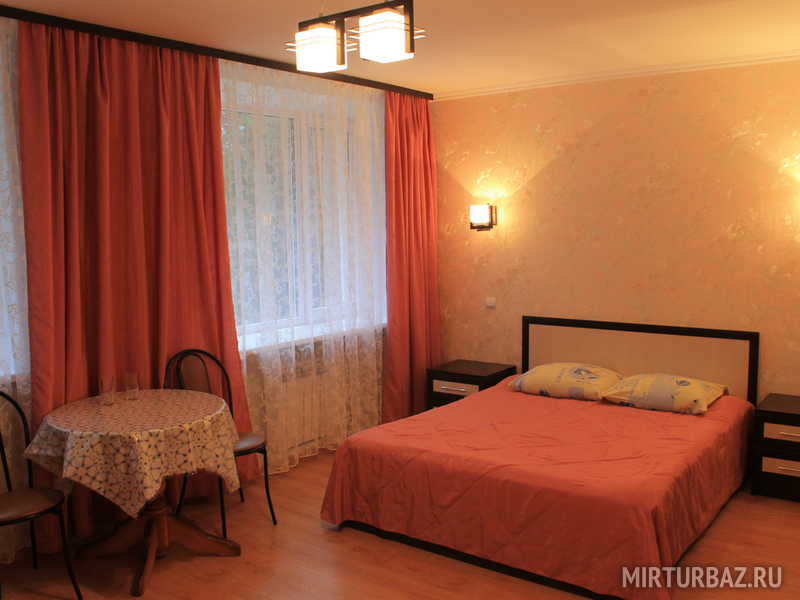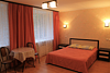 Двухкомнатный номер-люкс с двуспальной кроватью, раскладным двуспальным диваном, санузлом с душем, телевизором и холодильником.