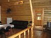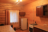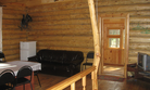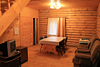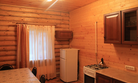 Одноэтажный VIP-дом с просторным холлом с камином и двумя кожаными креслами, одной спальней с двумя кроватями (одна двуспальная и одна полутораспальная), кухней, санузлом с душем.