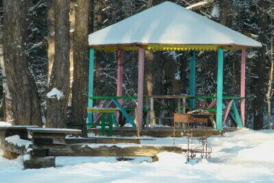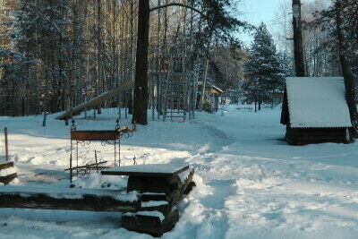Зимой можно любоваться заснеженным лесом, который искрится от инея.Отдыхающие могут взять напрокат все необходимое для зимнего отдыха: санки, лыжи, коньки. Любителей рыбалки очень порадует это место, потому что недалеко от базы находятся несколько озер: Белое, Великое, Филилейское, в которых очень много крупной рыбы. Есть возможность взять лодку напрокат.